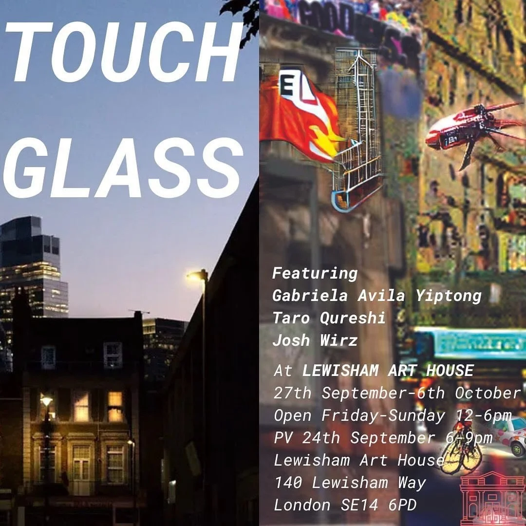 Opening this September at Lewisham Arthouse, Touch Glass presents recent work and new commissions by Josh Wirz, Gabriela Avila Yiptong and Taro Qureshi in an exhibition organised and curated by Cameron McClellan. Touch Glass’s title plays with the phrase “Touch Grass”, recently popularised as a playful insult online to encourage the target to go outside and regain touch with the natural world and their “common-sense” following too much time on social media. The exhibition instead encourages audiences to “lock in” with work exploring how technology mediates how we see the world and reflect on our place within it. Across the medium of photography, painting, performance and site-specific installation, the show addresses the “new normal” of the 2020s through a direct interrogation of ongoing crises around housing, artificial intelligence and social media content.